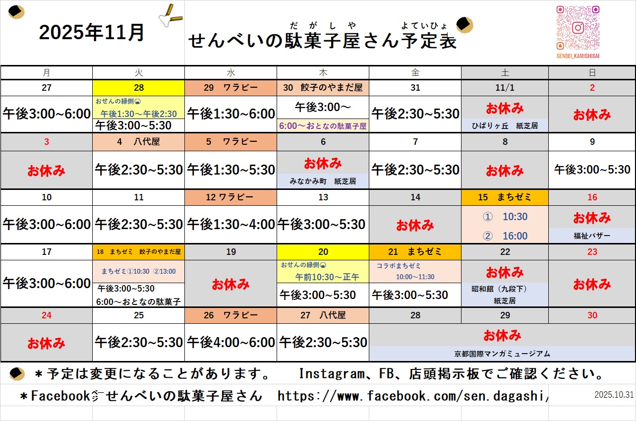 *6日は店主せんべいが紙芝居の出張のためお休みです。