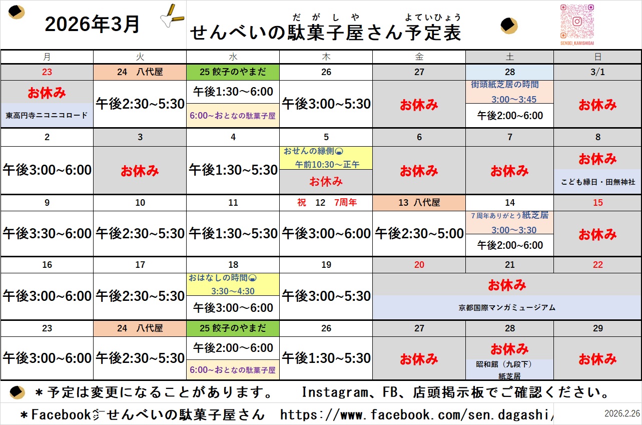 3月12日 せんべいの駄菓子屋さんの誕生日